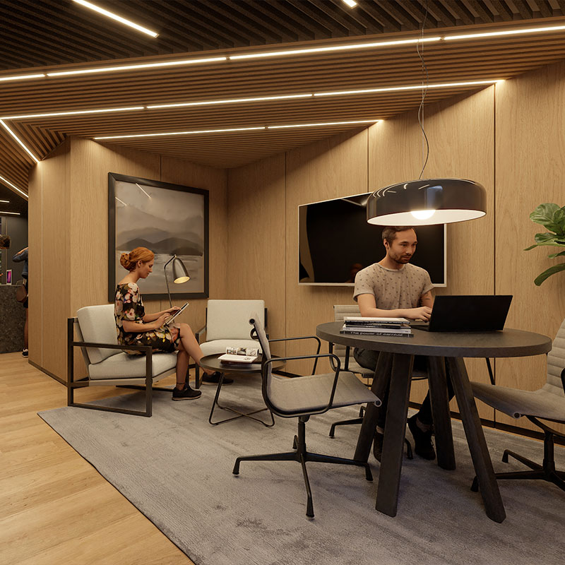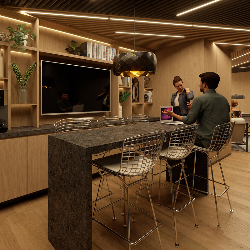 Entre sus amenidades destacan una cafetería y un espacio de coworking, ideales para disfrutar, trabajar y convivir sin salir de casa.