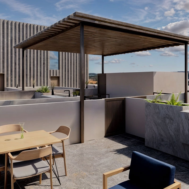 Algunos departamentos incluyen balcón o roof garden privado, ideales para disfrutar de espacios al aire libre en una de las zonas con mayor crecimiento y conectividad de la ciudad.